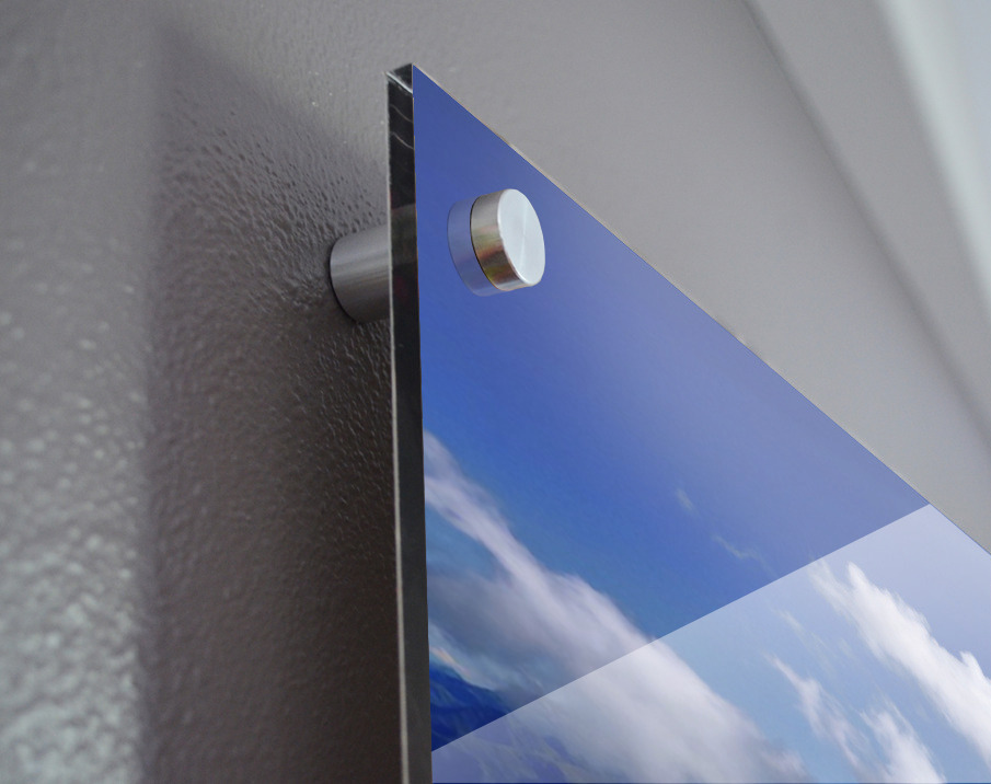 Printed to the edge - Ready to hang - provided with 4 premium polished aluminum stand off ( wall screws and mounting hardware provided )