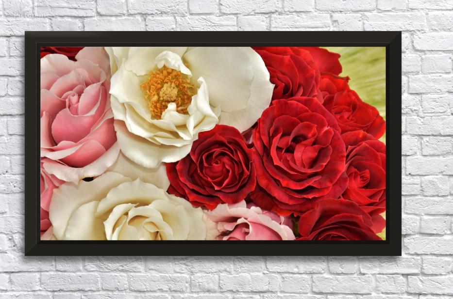 Gorgeously beautiful multi colored Roses arranged and photographed closely. This beautiful romantic image unveils the Queen of the flowers in a varie...[+]