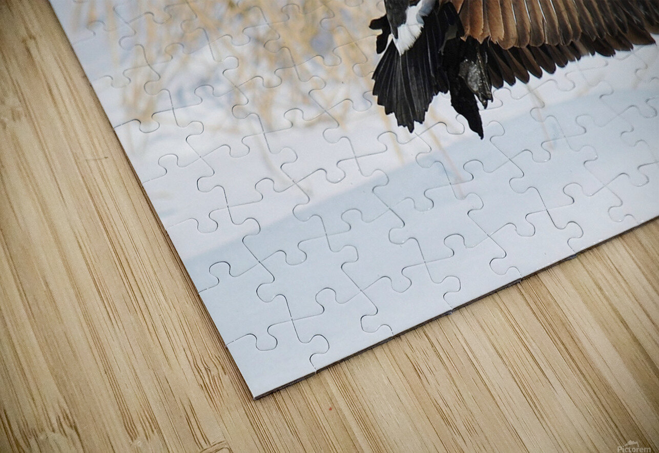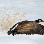 A beautiful Canadian image featuring a Canada Goose in flight on a winter afternoon. Selectively focused and photographed closely in natural light, t...[+]