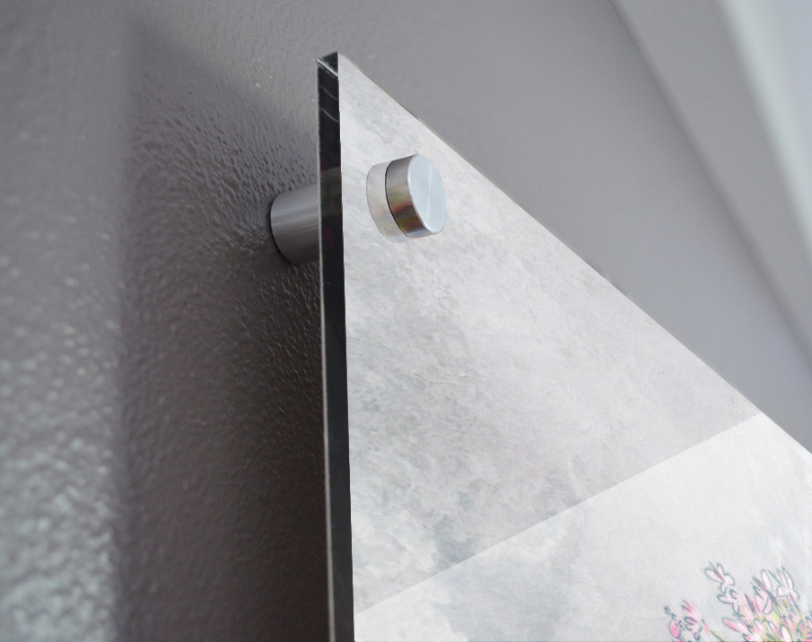 Printed to the edge - Ready to hang - provided with 4 premium polished aluminum stand off ( wall screws and mounting hardware provided )