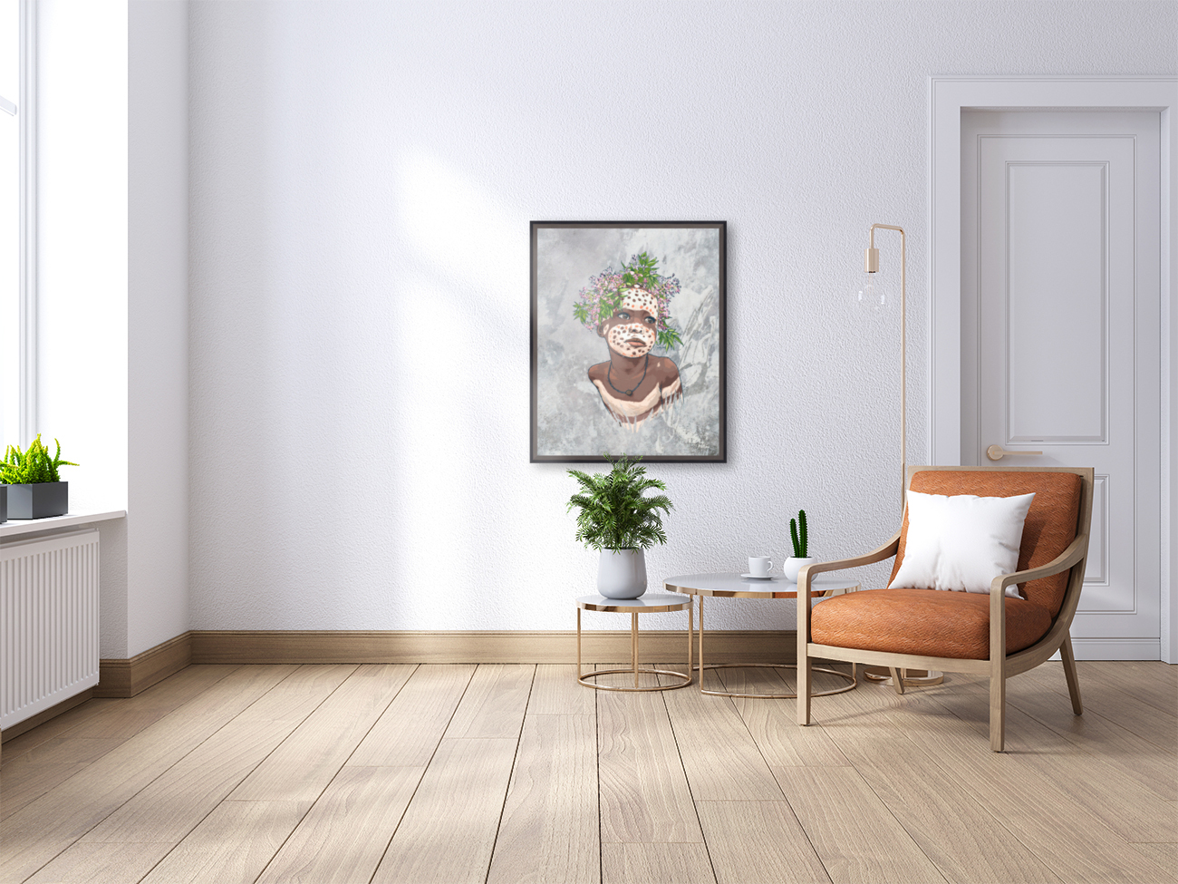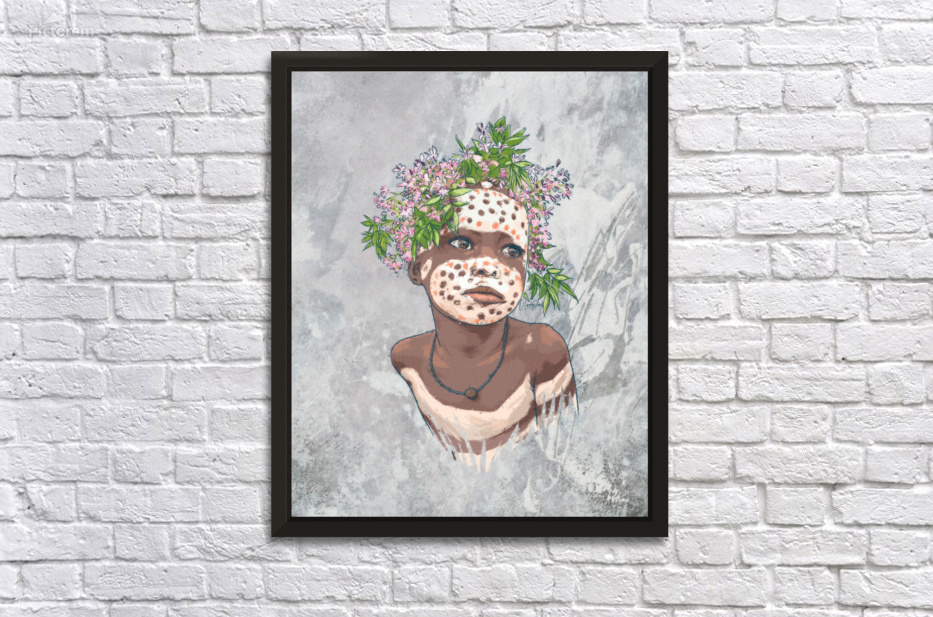 Award-winning Artist and Creative Director opens her private collection for public viewing via virtual gallery for the first time. “Old Soul,” from the Genesis Collection was inspired by the photographic journalism of Giovanna. These intimate studies of rarely-seen Ethiopian Omi tribal culture provided deeply moving therapy during a dark period of intense, complex grief and healing. The children are the future, and the Motherland is home. Explore the personal collection for a limited time. Africa, African, Afrikans, Ethiopia, culture, children, child, flowers, floral, illustration, painting, bust, tribal