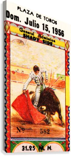1956 PLAZA DE TOROS BULL FIGHTING TICKET STUB ROW ONE BRAND  Canvas Print