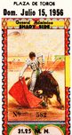 1956 PLAZA DE TOROS BULL FIGHTING TICKET STUB