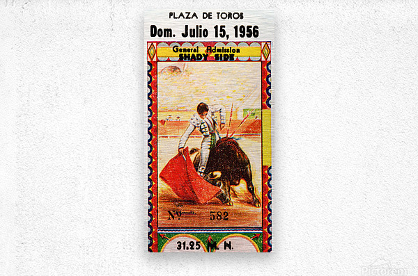1956 Plaza De Toros Bull Fighting Ticket Stub  HD Metal print with Floating Frame on Back