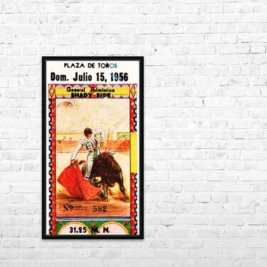 1956 Plaza De Toros Bull Fighting Ticket Stub Picture Frame Printing