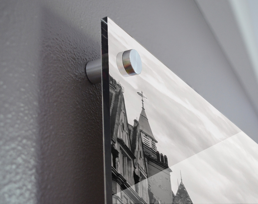 Printed to the edge - Ready to hang - provided with 4 premium polished aluminum stand off ( wall screws and mounting hardware provided )