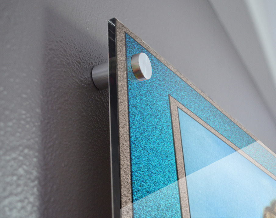 Printed to the edge - Ready to hang - provided with 4 premium polished aluminum stand off ( wall screws and mounting hardware provided )