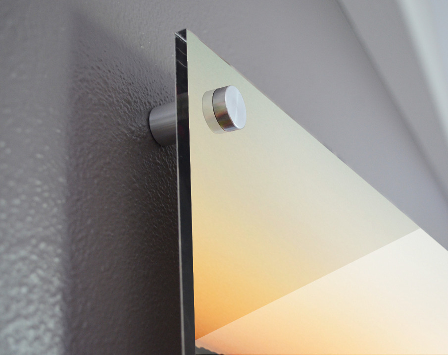 Printed to the edge - Ready to hang - provided with 4 premium polished aluminum stand off ( wall screws and mounting hardware provided )