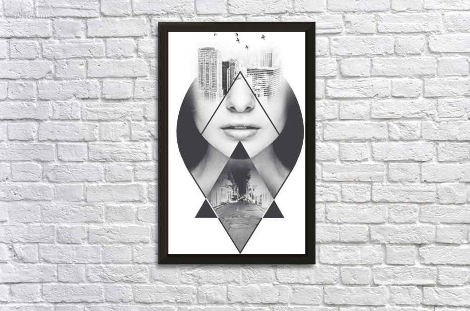 Double Exposure of a Woman and City Street Wall Decor Frame