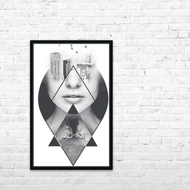 Double Exposure of a Woman and City Street Picture Frame Printing