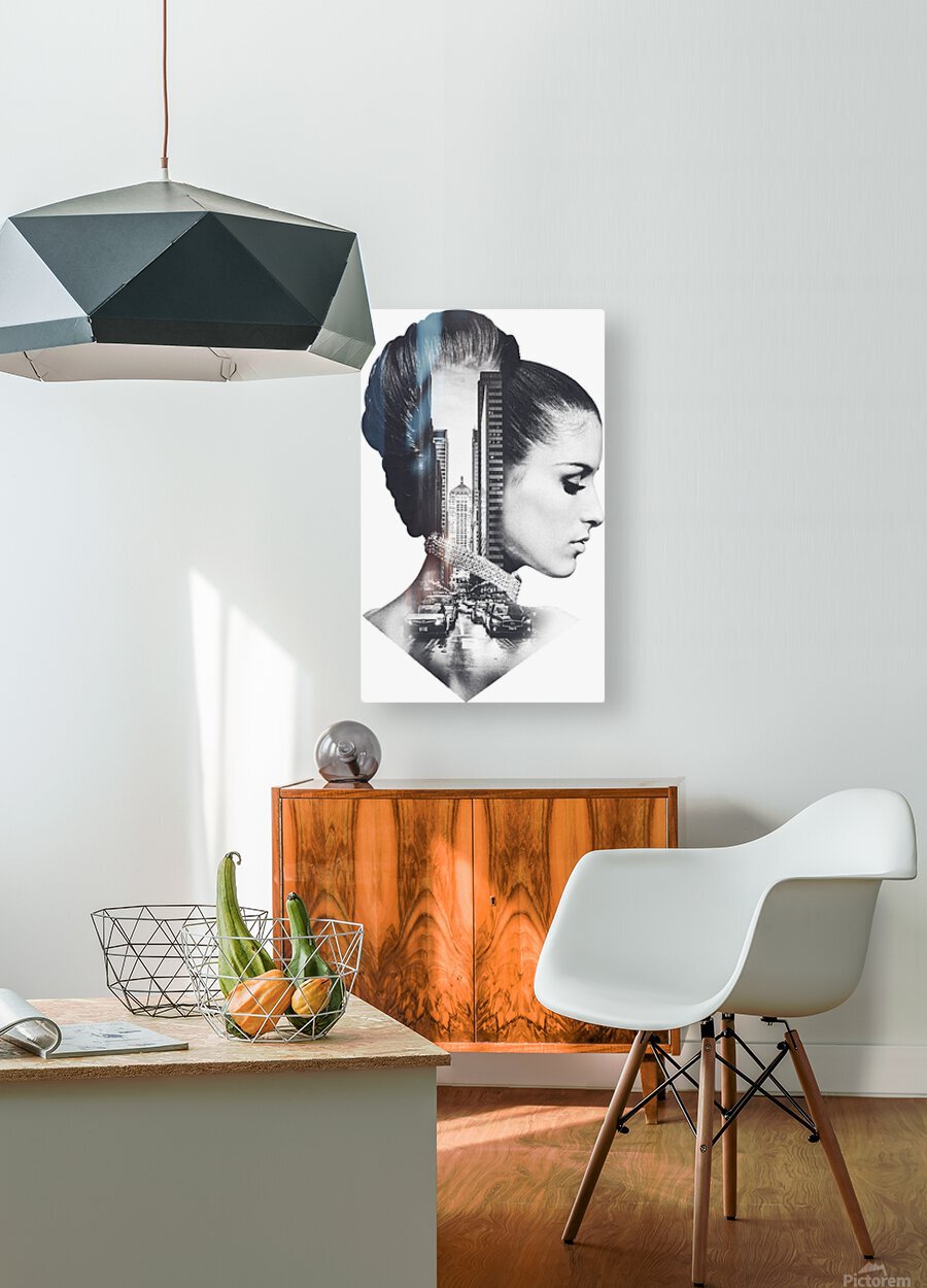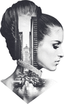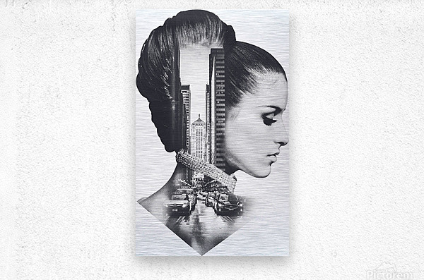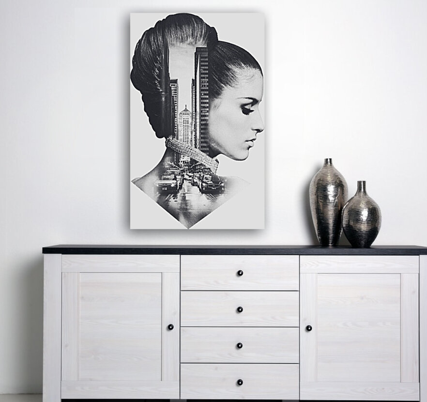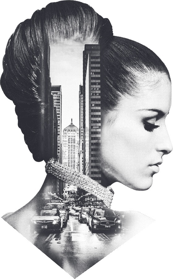 ABOUT THIS ARTWORK: DOUBLE EXPOSURE OF A WOMAN AND A CITY STREET