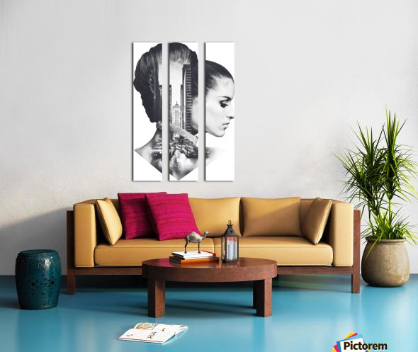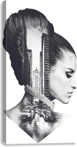 DOUBLE EXPOSURE OF A WOMAN AND A CITY STREET YV  Canvas Print