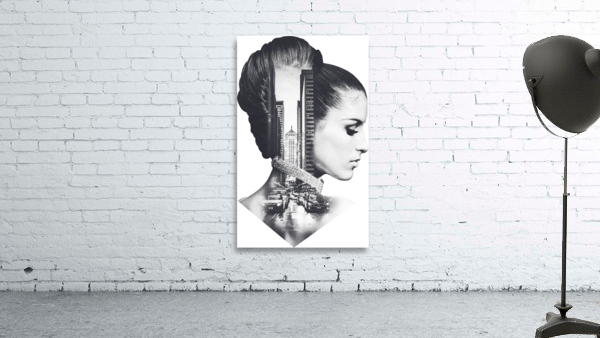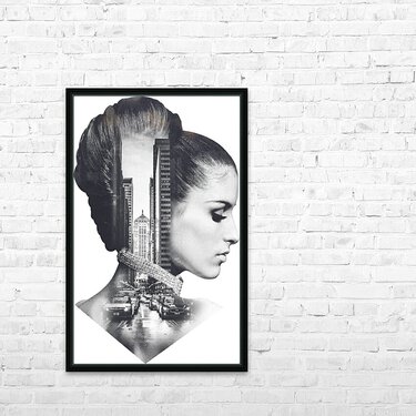 Double Exposure of a Woman and a City Street Picture Frame Printing