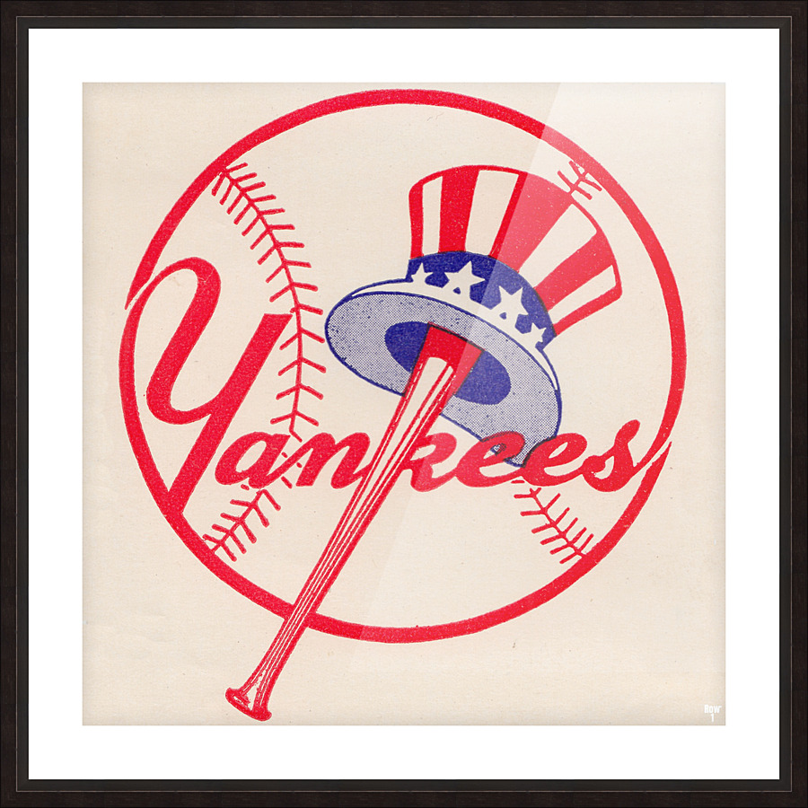 Best Vintage Baseball Art Posters | 6,300 Historic Sports Prints | 2.2 Million Gallery Views | Row 1 | 1950's New York Yankees Baseball Decal Art Poster | Created from an authentic vintage 1950's New York Yankees decal in our collection, this Row One Brand vintage Yankees wall art will look fantastic in your game room or office. Tap the words in our Keyword Search Box to shop more "vintage baseball art". Row One Brand historic sports art prints are not affiliated with, licensed, sponsored, authorized, or endorsed by any team, league, other artist, athlete, other brand, or any licensing entity. Only non-copyrighted memorabilia sports art is used by Row One to create our historic sports wall art prints. Derivative art © 2021 Row One Brand