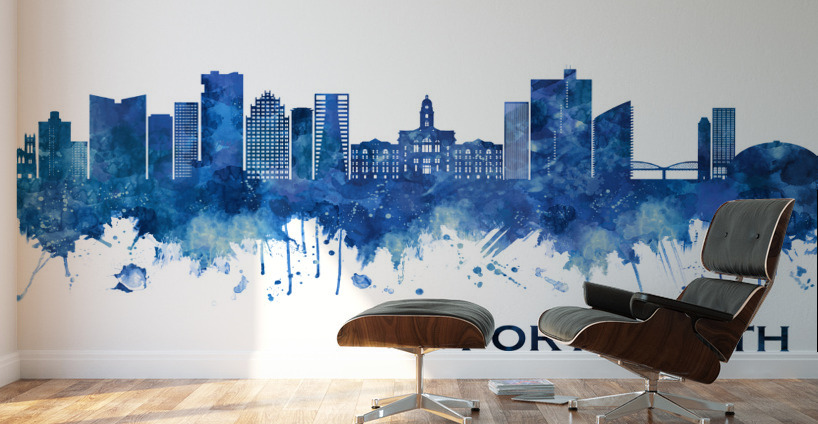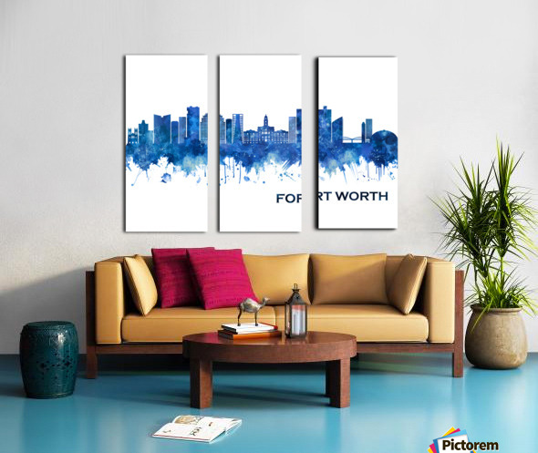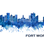 Blue Watercolor Skyline of Fort Worth, the fifth-largest city in the U.S. state of Texas