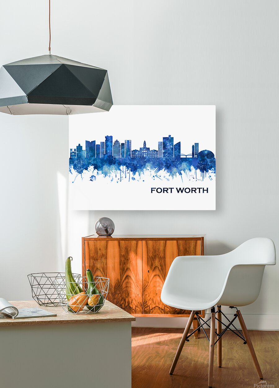 ABOUT THIS ARTWORK: FORT WORTH TEXAS SKYLINE BLUE