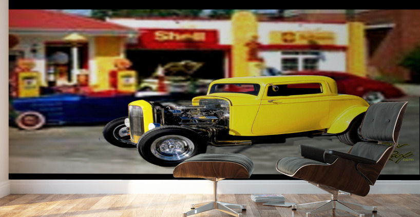 Get this artwork "Hot Rod Gas Station Wall Mural" in a framed print.