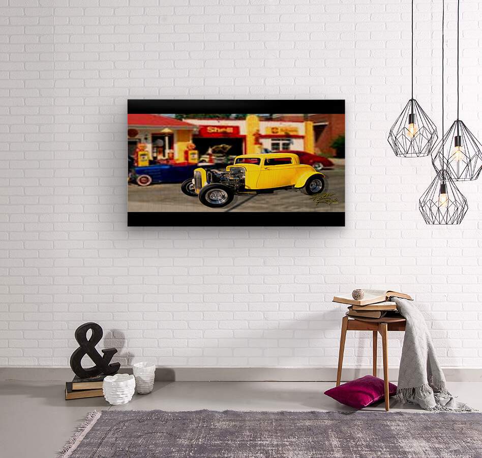 Hot Rod Gas Station  Wall Mural  Wood print