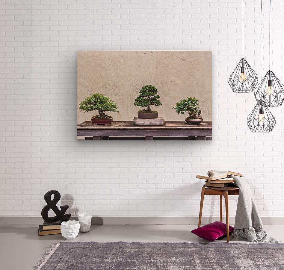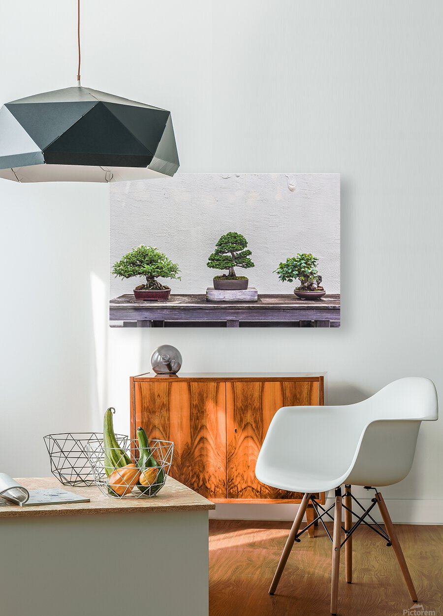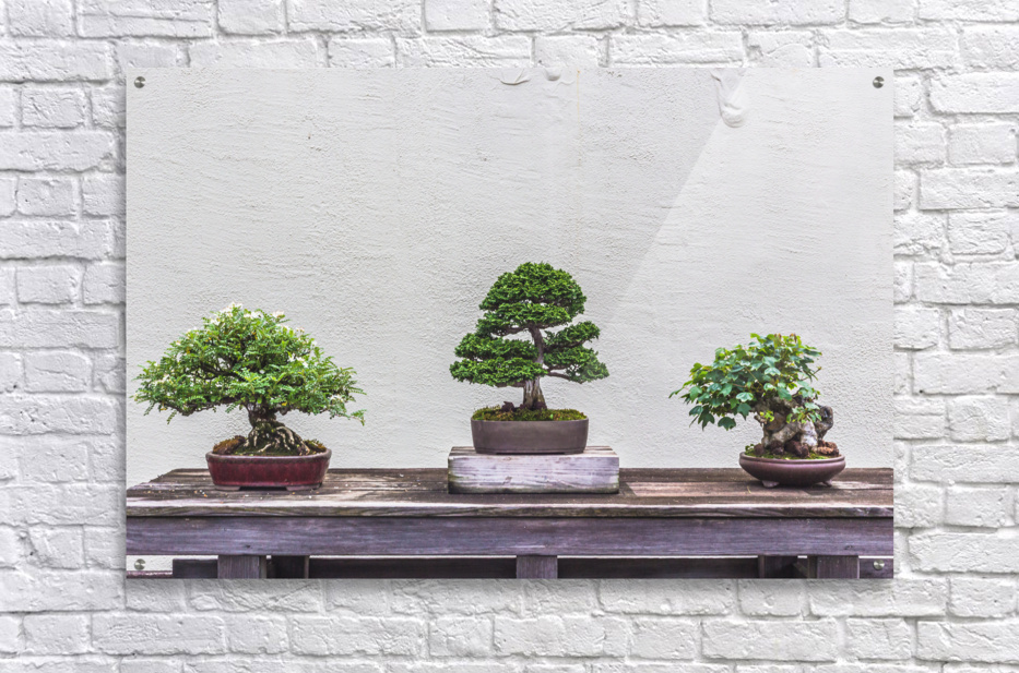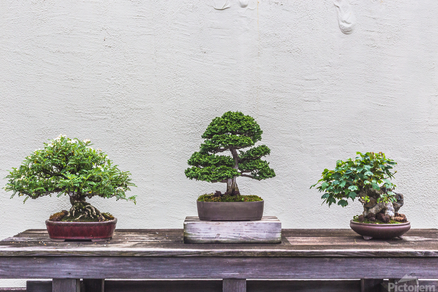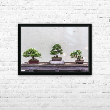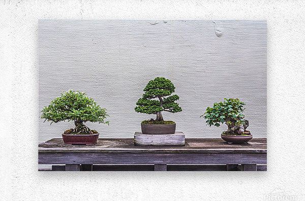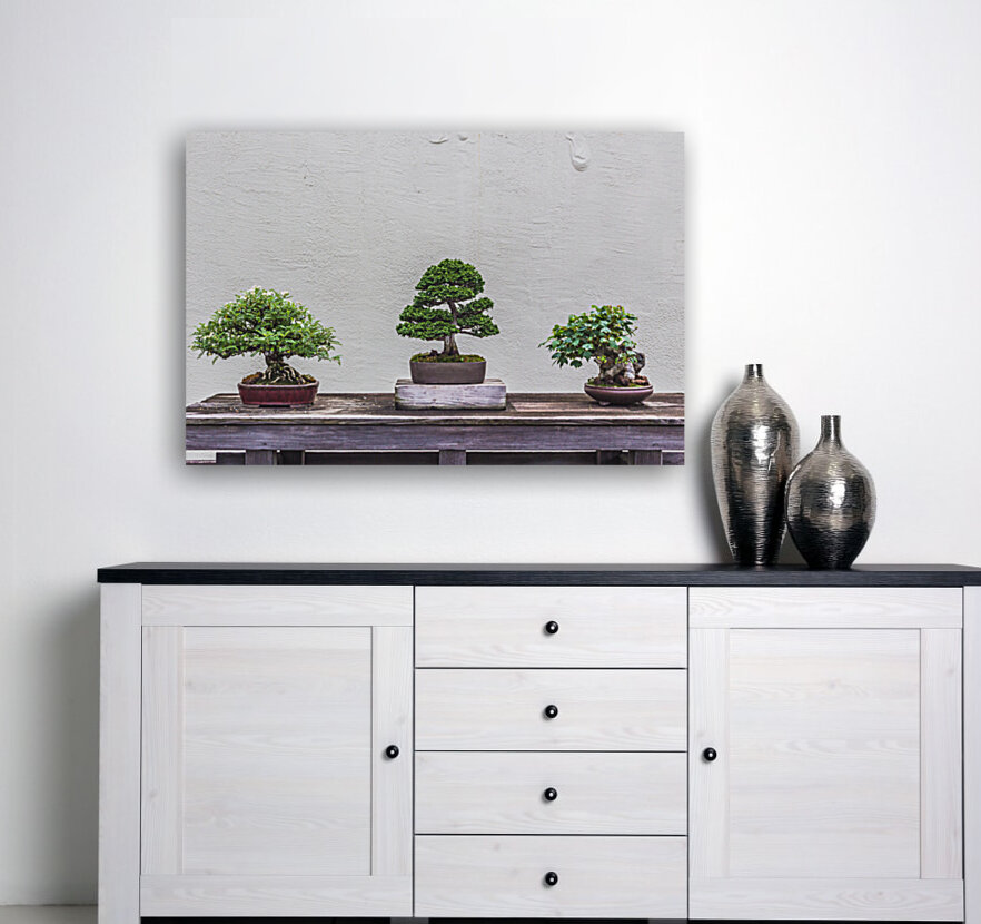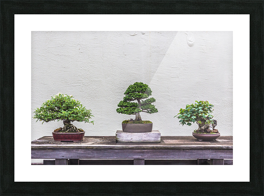 Get this artwork "Display of Three Bonsai Trees" in a framed print.