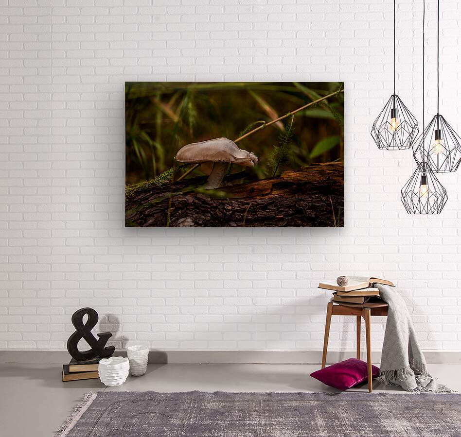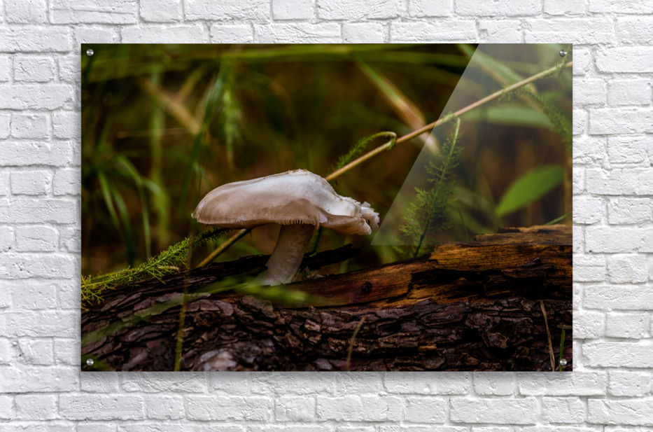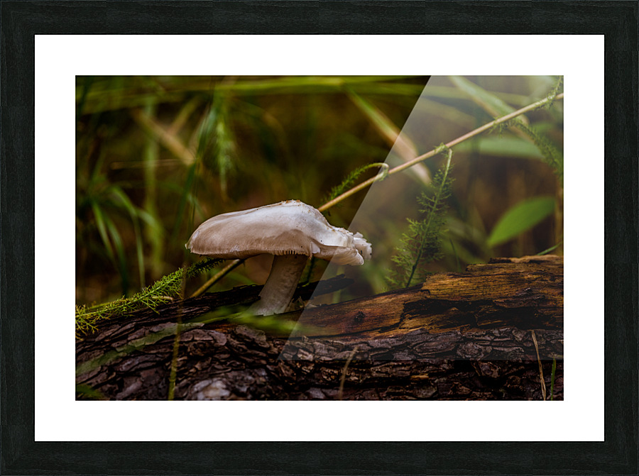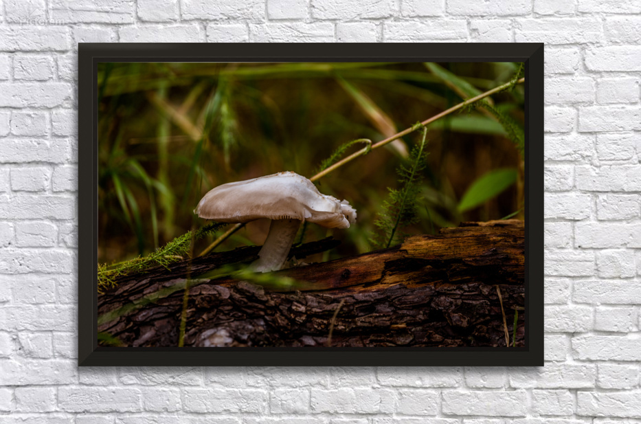 Get this artwork "White Mushroom Growing On A Log" in a framed print.