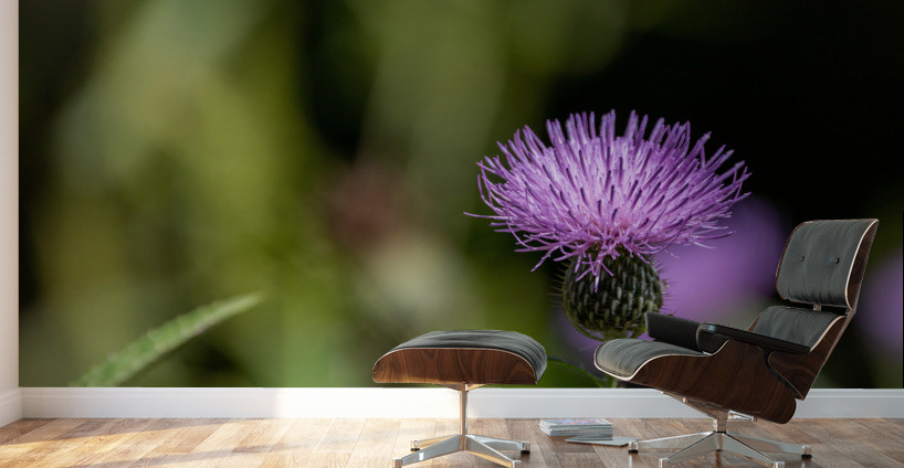 Purple Fluffy Spear Thistle Flower Wall Decor Frame