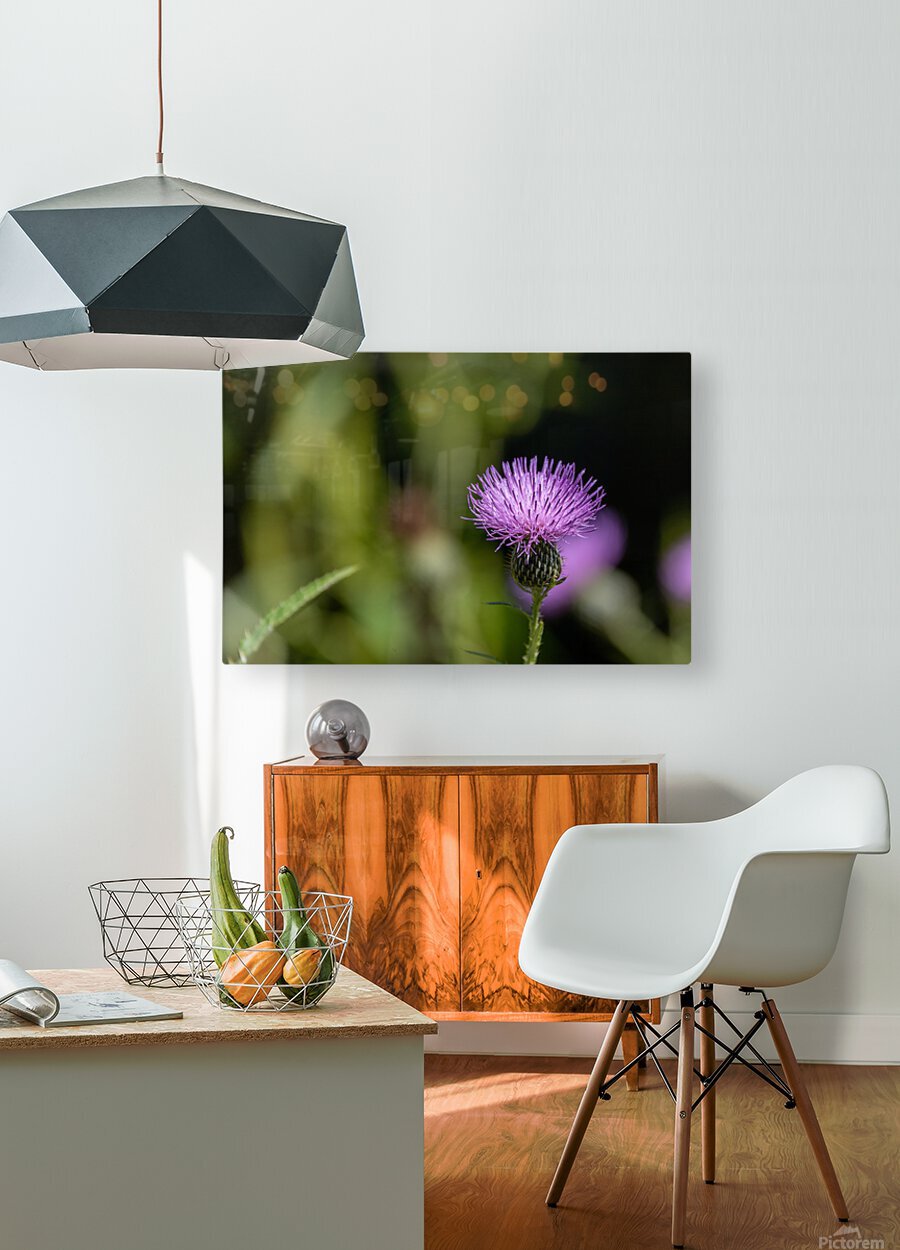 PURPLE FLUFFY SPEAR THISTLE FLOWER APERTURE ADVENTURE DELANEY VAN  Canvas Print