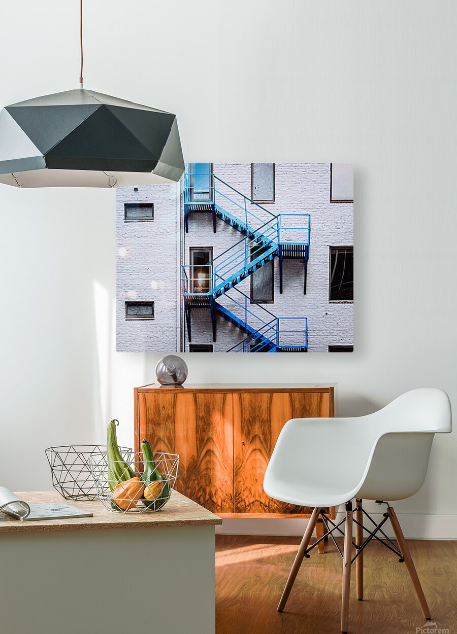 Blue Fire Escape Stairs HD Sublimation Metal print with Decorating Float Frame (BOX)