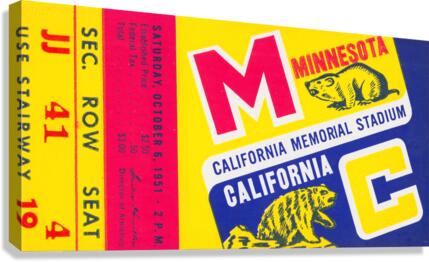 1951 MINNESOTA VS. CALIFORNIA FOOTBALL TICKET ART ROW ONE BRAND  Canvas Print