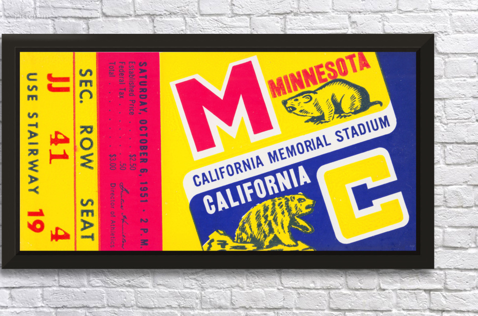 Get this artwork "1951 Minnesota vs. California Football Ticket Art" in a framed print.