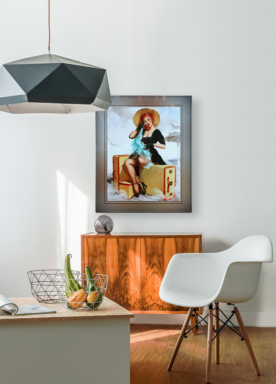 Welcome Traveler by Gil Elvgren Classic Xzendor7 Old Masters Reproductions HD Sublimation Metal print with Decorating Float Frame (BOX)