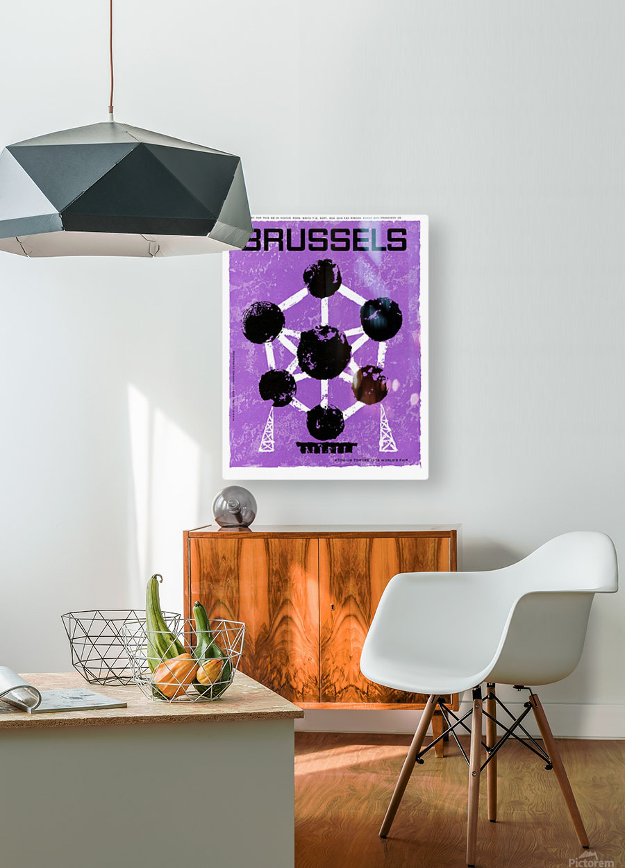 Poster for the Atomium Tower in Brussels, World Fair 1958  Wood print