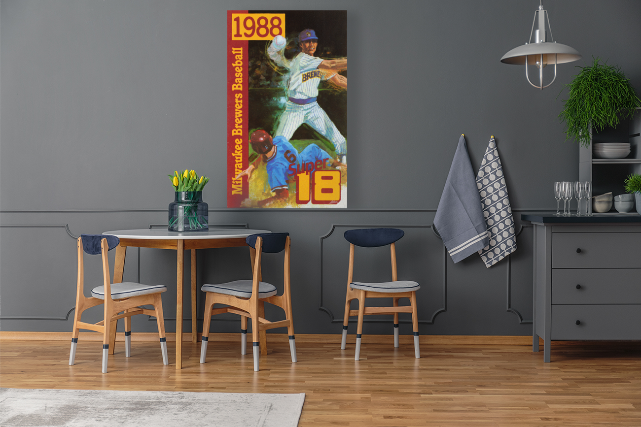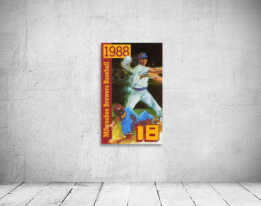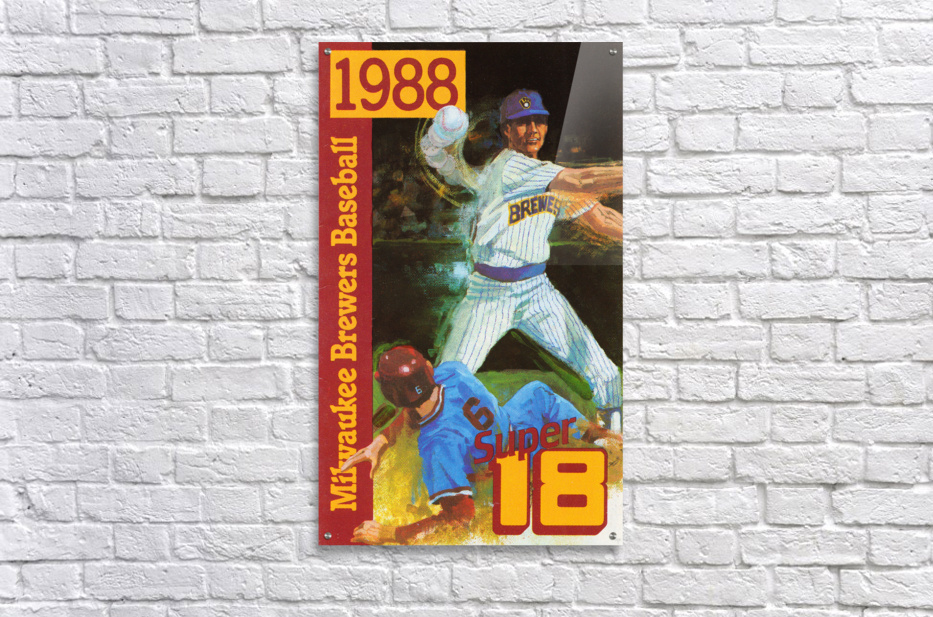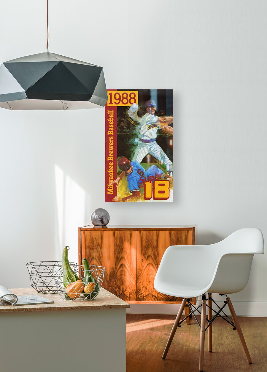 New! 1988 WVTV "Super 18" Television Ad Milwaukee Brewers Baseball Art | Vintage Baseball Art Collection | 6,400 Historic Sports Prints | 2.3 Million Gallery Views | Row 1 | This 1988 Milwaukee Brewers retro art will look terrific in your game room, bath, kitchen, or office. Row One's historic sports wall art is not affiliated with, licensed, sponsored, authorized, or endorsed by any team, league, other artist, athlete, venue, other brand, or any licensing entity. Only non-copyrighted memorabilia that dates back to 1876 is used by Row One to create our historic sports prints. Derivative art © 2021 Row One Brand