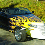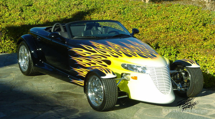 " The PAINTMASTER" started his career in pin-striping ,custom painting at the age of seven when his Dad handed him a lettering brush and said,” So you want to learn to paint huh?” He gave him a “No Trespassing” sign to practice on. By the age of thirteen he was painting cars and today he is well known for his slogan “ We paint anything and every thing.” At PAINTMASTER ART STUDIO in Las Vegas Rikki will paint anything that paint will stick to including cars, motorcycles, helmets, RVs, semi-trucks, antiques or even personalize a wall in your home. Using his imagination Russ can turn his client’s dreams into a reality. His talent for special effects produces traffic stopping flames, graphics, murals, custom lettering, pin striping , custom painting, anything from the mild to the wild as he continues to set the trends for tomorrow. Gerner’s work has appeared in magazines such as “Cruiser Quarterly” “Auto Art” “Truckin” “Super Chevy” “Mini-Trucking” “Auto Graphics” and “Popular Mechanics” just to name a few. Using four generations of time tested Gerner family standards; Rikki has continued to expand his skills and talents. He is the creator of the Rikki Rocx Shaker tubes, stencil sets and the Resurrection collection. The PAINTMASTER has many satisfied clients including celebrities such as Elvira, Robert Goulet, Gladys Knight, other Las Vegas performers including the master impressionist Danny Gans who said “The Paintmaster Rikki Rocx.. ….he is truly the best that I have ever seen…”