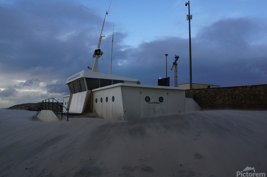 LIFEGUARDS STATION IN SAND CEDRIC DOZ  Canvas Print