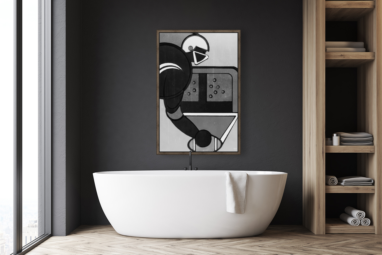 New! 1977 Retro Football Art Remix | Row One Brand | 6,700 Historic Sports Prints | 2.6 Million Gallery Views | Row 1 | This unique Row One Brand black and white football art print was created from authentic 1977 football memorabilia art in our collection. This 1970's retro football art will look great in your home or office. Row One Brand historic vintage sports art prints are not affiliated with, licensed, sponsored, authorized, or endorsed by any college, university, team, league, other artist, athlete, other brand, or any licensing entity. Only non-copyrighted sports memorabilia art is used by Row One to create our historic sports wall art prints. Derivative art © 2022 Row One Brand