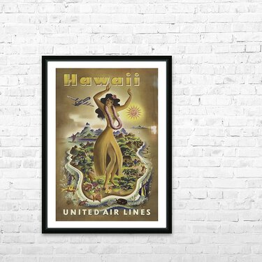 Vintage Travel Poster Hawaii United Air Lines Picture Frame Printing