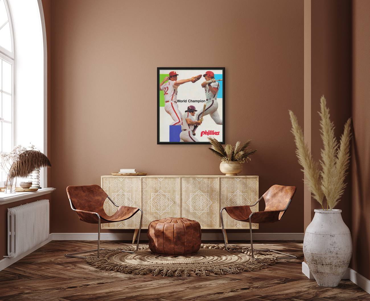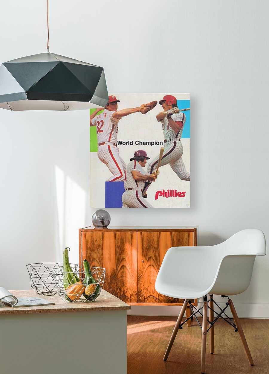 New! 1981 Philadelphia Phillies Remix Art | Historic Sports Art Collection | Row One Brand | 6,600 Sports Wall Art Prints | 2.5 Million Gallery Views | Row 1 | Created from authentic 1981 Philadelphia Phillies memorabilia in our collection, this Row One Brand retro Phillies remix wall art will look super in your game room or office. Artwork shows Philadelphia stars Mike Schmidt, Pete Rose, and Steve Carlton. Known as the "Cardiac Kids," the Phillies won the 1980 World Series by winning numerous close games. Row One Brand historic sports art prints are not affiliated with, licensed, sponsored, authorized, or endorsed by any team, league, other artist, athlete, other brand, or any licensing entity. Only non-copyrighted sports memorabilia art and memorabilia with expired copyrights are used by Row One to create our historic sports wall art prints. Derivative art © 2022 Row One Brand
