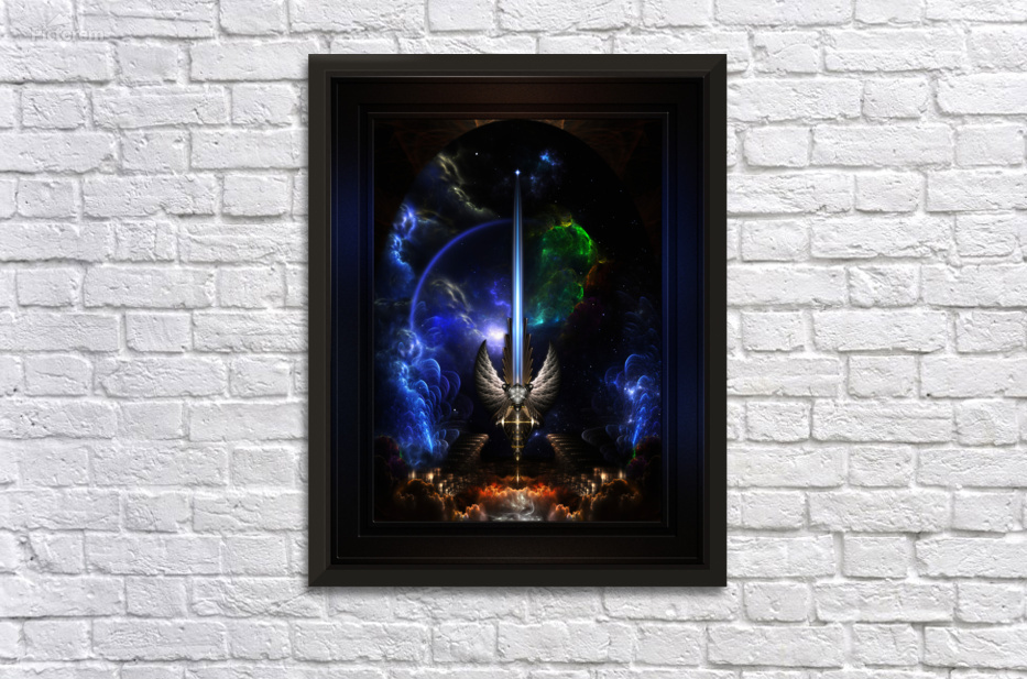 The Angel Wing Sword Of Arkledious Space Fractal Art Fantasy Sword Spacescape Composition Wall Decor Frame