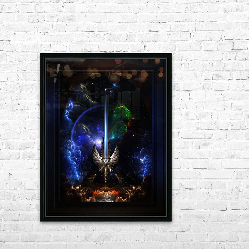 Get this artwork "The Angel Wing Sword Of Arkledious Space Fractal Art Fantasy Sword Spacescape Composition" in a framed print.