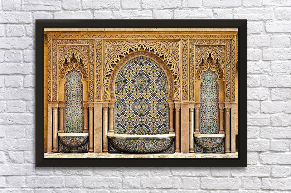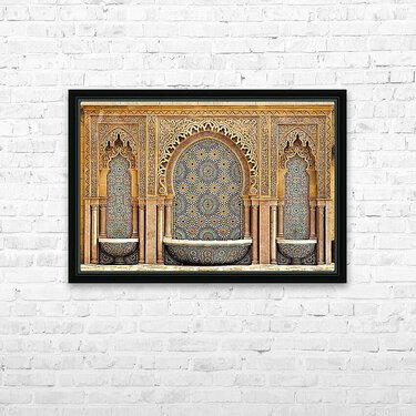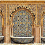 Typical moroccan tiled fountain in the city of Rabat near the Hassan Tower and Mohamed V Mausoleum. The Mausoleum is a true master-work of Moroccan ar...[+]