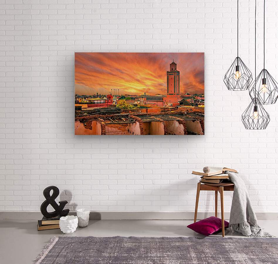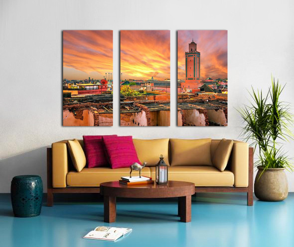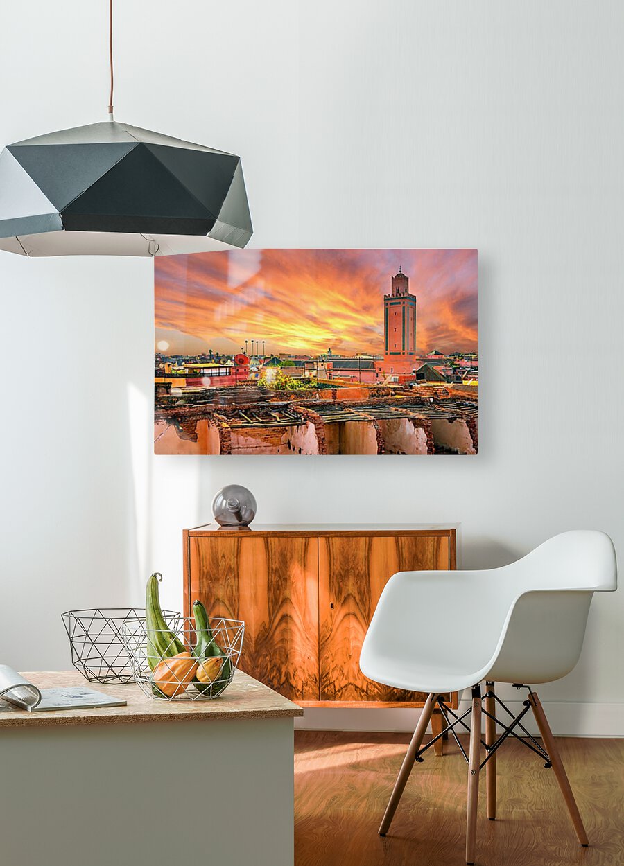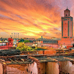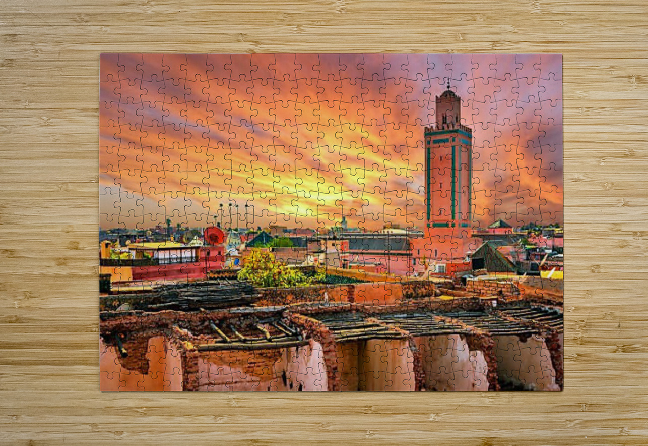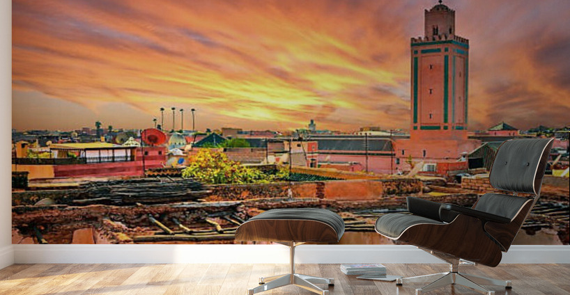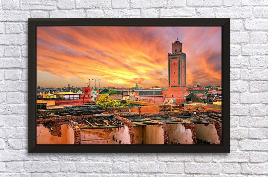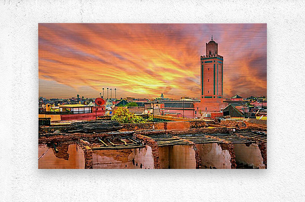 Panoramic sunset view of Marrakech and old medina Morocco