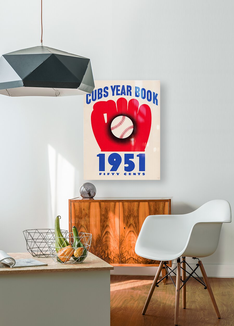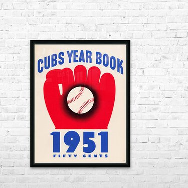 Row One Brand's 1951 Chicago Cubs Yearbook Cover Art will look fantastic in your home or office. This vintage Cubs art looks great as a canvas, framed print, poster, wood print, or metal sign. Row One Brand historic prints are not affiliated with, licensed, sponsored, authorized, or endorsed by any team, league, other artist, athlete, other brand, or any licensing entity. Only non-copyrighted publications and publications with expired copyrights are used by Row One to create our historic prints. This memorabilia art is part of Row One Brand's historic sports art collection and may not be used for commercial purposes without permission from Row One. The contents of this website are copyright protected and punishable by federal law up to $150,000 for willful infringement. For use on a blog or news, please credit Row One Brand.