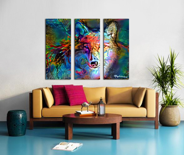 Color Wolf Wood print