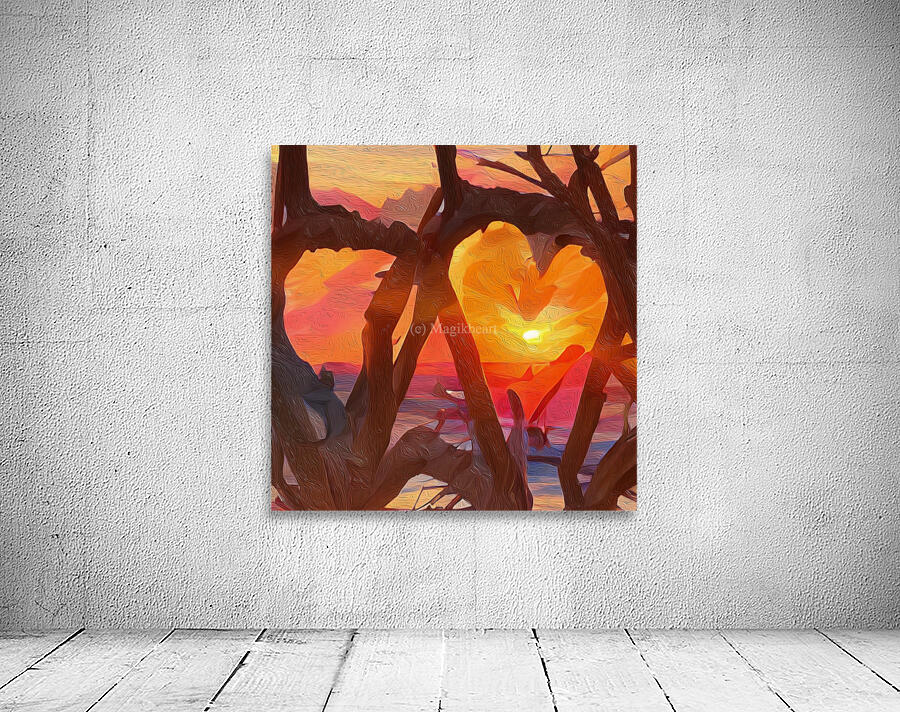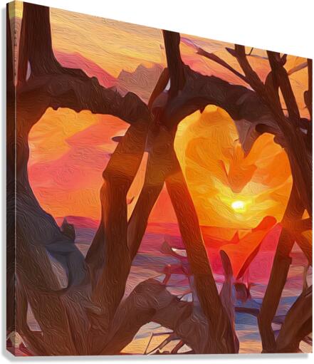 SUNSET DRIFTWOOD HEART MAGIKHEART  Canvas Print