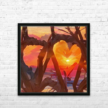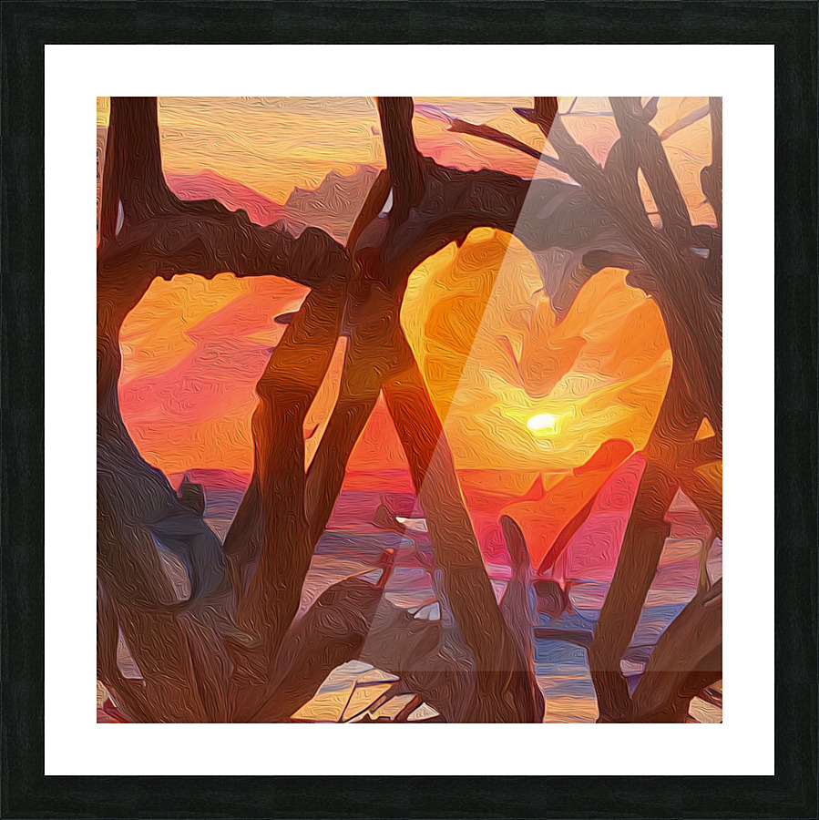 Get this artwork "Sunset Driftwood Heart" in a framed print.