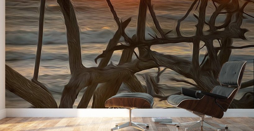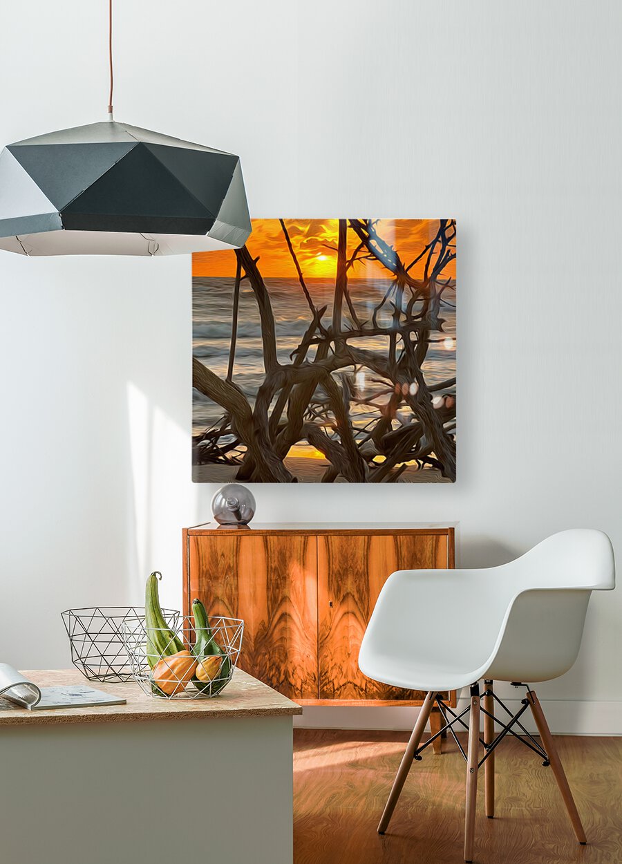 Beautiful photography along with painted brush stroke artistry of a gorgeous sunset at Wiggins-Delnor State Park in Naples Florida.