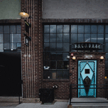Vibrant blue door of a downtown nightclub in RiNo Arts District of Denver Colorado