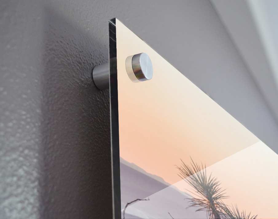Printed to the edge - Ready to hang - provided with 4 premium polished aluminum stand off ( wall screws and mounting hardware provided )