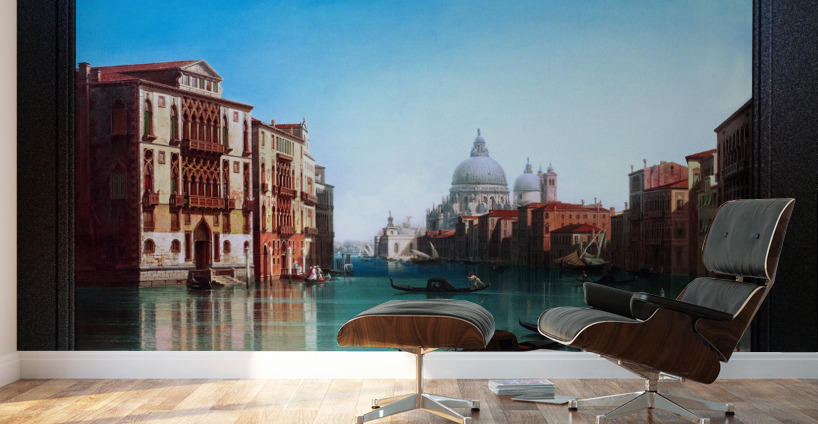 View of Canal Grande in Venice by Gustaf Wilhelm Palm Remastered Xzendor7 Classical Fine Art Old Masters Reproductions  Wood print