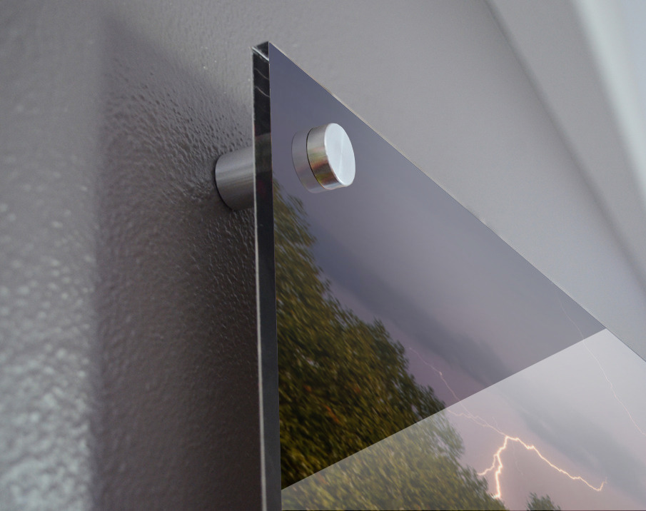 Printed to the edge - Ready to hang - provided with 4 premium polished aluminum stand off ( wall screws and mounting hardware provided )